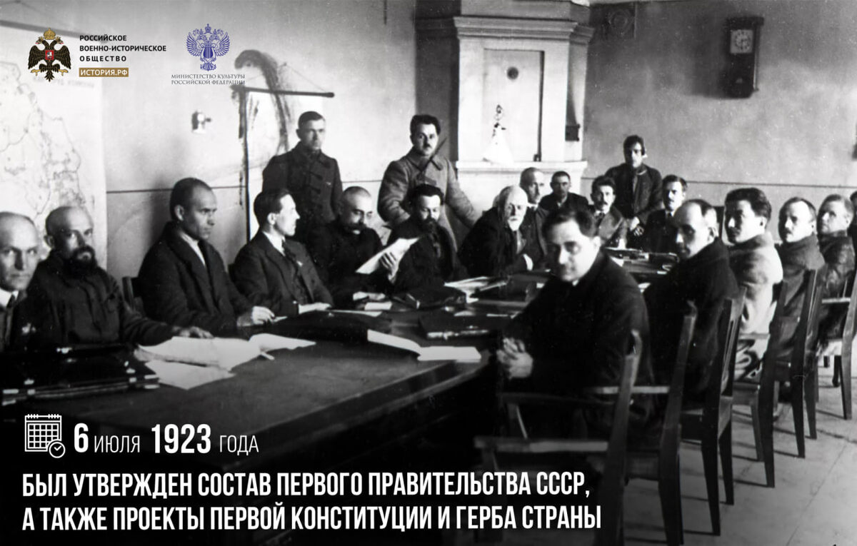6 июля 1923 года был утвержден состав первого правительства СССР, а также проекты первой Конституции и герба страны