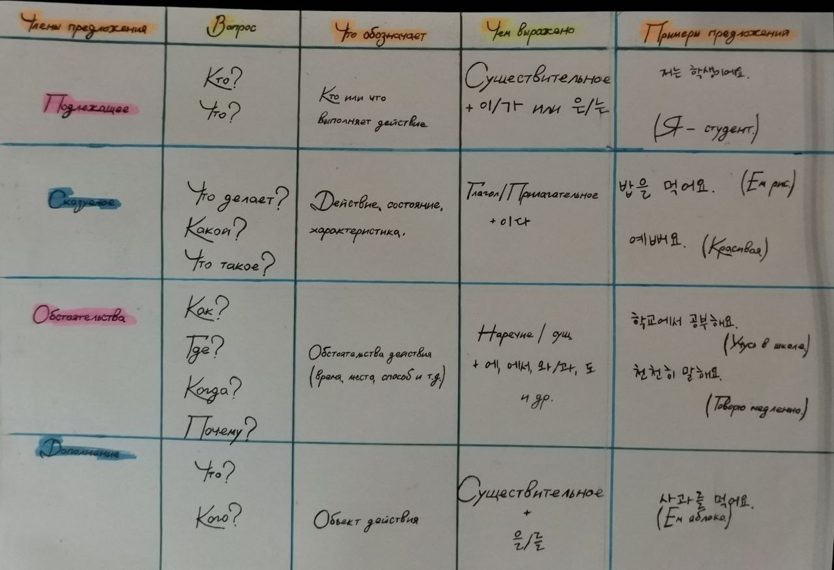 Всем 안녕! Сегодня хочу поделиться с вами своей небольшой шпаргалкой по составлению предложений на корейском