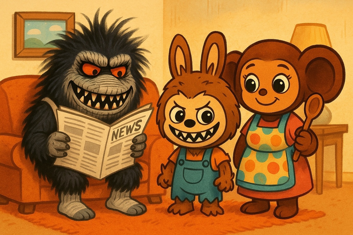 Когда увидел в новостях новую популярную игрушку Лабубу, мне сразу представилось, что так мог бы выглядеть результат скрещивания советского Чебурашки и американского Зубастика. Вот решил нарисовать в нейросети их, так сказать, семейный портрет #ИИ #юмор #Чебурашка #Лабубу #Зубастики #кино #мультфимльмы