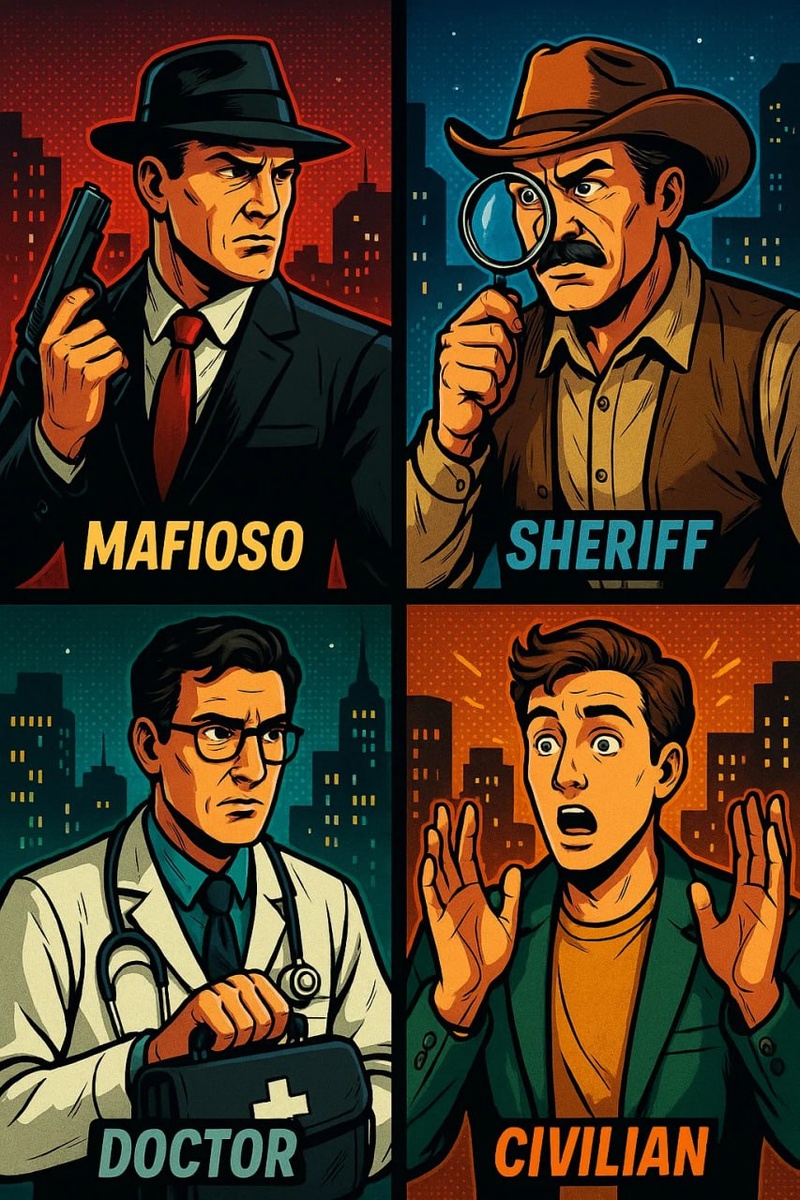 Кто все эти люди и зачем им ночью не спится? Мафия - это не просто игра, это спектакль. А у каждого спектакля есть роли. Вот краткий разбор классических персонажей, чтобы не путаться, кто за кого и зачем. 🔪 Мафия 🤠 Шериф (Комиссар) 💉 Доктор 😐 Мирные жители Этого набора достаточно для базовой партии. Но если хочется чего-то поинтереснее - заглядывай в следующую часть 😉 🔙 Предыдущая часть: Интересные факты о мафии 🔜 Следующая часть: Креативные вариации Кем ты любишь играть больше всего? Какая роль вызывает панику? Подписывайтесь на мой блог в telegram и узнавайте больше про мир настолок!