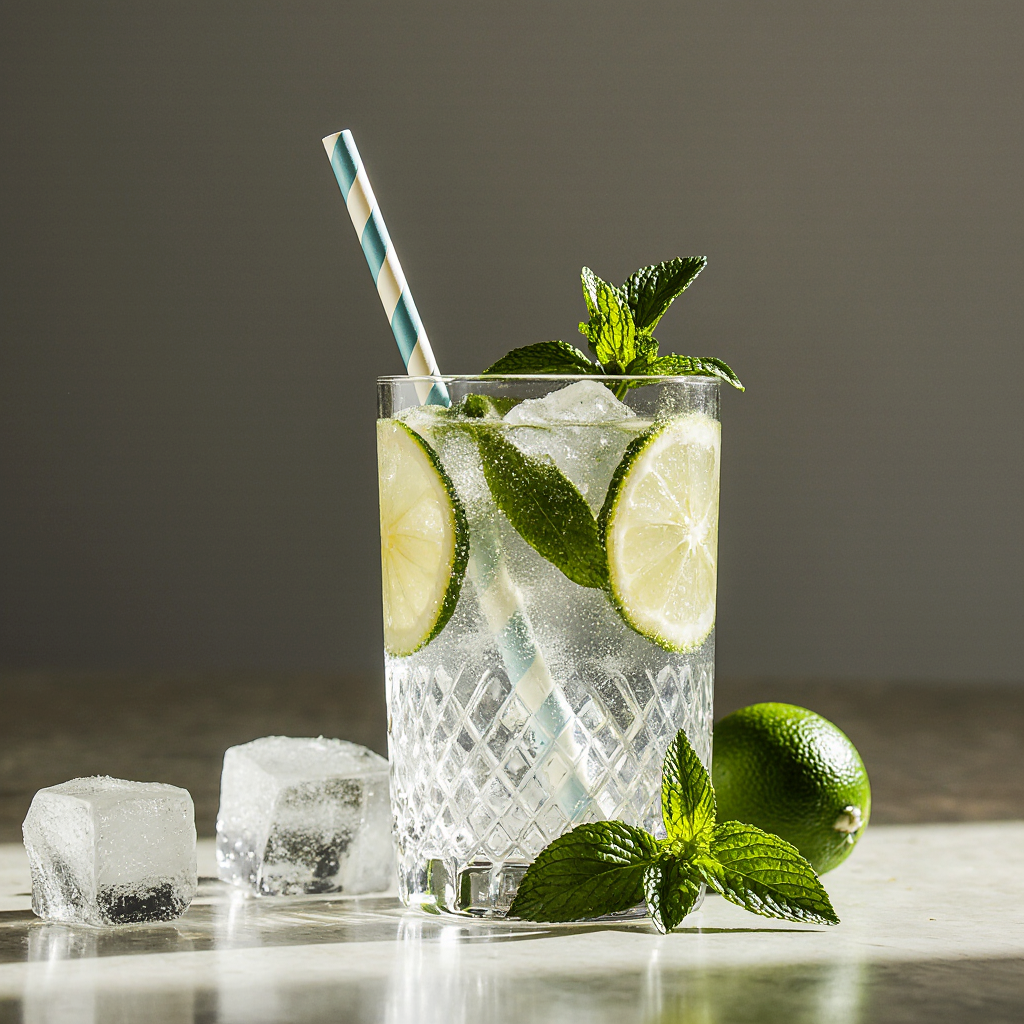 Освежение без сахара за 3 мин. Ингредиенты: 1 лимон · 1 лайм · 1 л газированной воды · веточки мяты. Шаги: