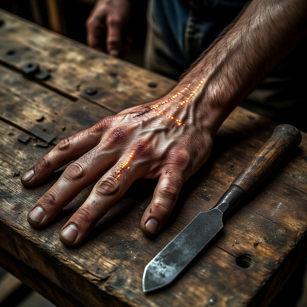 Всё началось с занозы. Я неловко схватился за доску и посадил в палец крошечную щепку. Я потянулся к одной из острых, как бритва, стамесок, чтобы подцепить её. И в этот момент я почувствовал непреодолимый, холодный, абсолютно логичный импульс. Не вытащить занозу. А вырезать её. Аккуратно, ровным квадратом, удалить «дефектный» участок кожи вместе с инородным телом. Оставить чистую, идеальную поверхность.