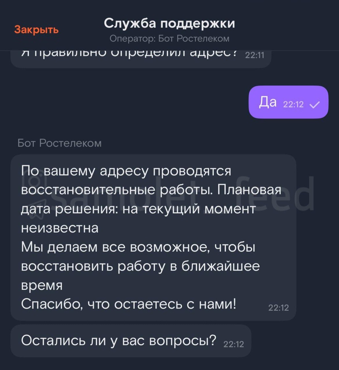 Сообщается, что в части домов ЖК лег интернет у провайдера Ростелеком. ________ Присылать новость @mstislavz 👉 Обсудить в чате ЖК 👉 Подписаться на канал
