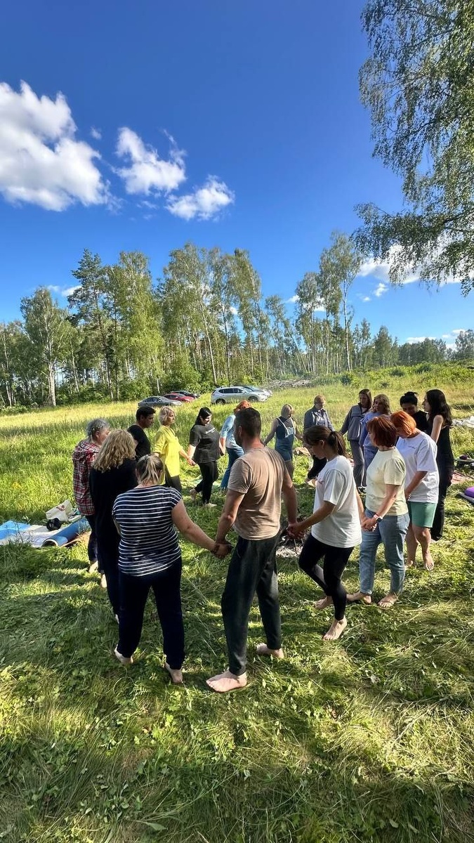 ✨Вчера у костра на нашей "Встрече друзей" мы медитировали под чарующие звуки волшебного Ханга, на котором играл наш приглашенный музыкант из Москвы, Анатолий @Tolik-Ch – наш друг и единомышленник, мы знаем его уже много лет. Было много коллективных практик👍Одна из – Активация новых возможностей!! Раскрытие потенциала души!! Все участники встали вкруг и закрутили воронку, ходили по траве босиком, делились друг с другом силой, энергией..✨ 🔥🔥Ещё сжигали в костре всё "ненужное" – установки и программы, которые тормозят, мешают развитию души, не дают встать на свой путь. Также с помощью стихии🔥 Огня, Духов Огня привлекали в свою жизнь 🧬 то, что будет способствовать развитию и исполнению желаемого. Много чего интересного и такого нужного для каждого было на вчерашней встрече. 🌈Но самое главное, мы объединились для того, чтобы нести свет, благо, делиться своими мыслями, эмоциями, желаниями, внутренними ощущениями, переживаниями, страхами.. Вчера возникали разные вопросы: причины