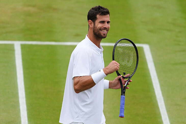 Карен Хачанов вышел в четвертьфинал «Уимблдона». На самом деле это было самым вероятным сценарием уже после первых двух дней турнира, когда из его части сетки вылетели практически все топ-игроки – в первую очередь третья ракетка мира Александр Зверев. Но Хачанову еще пришлось пострадать. Во втором круге он в тяжелых пяти сетах прошел чемпиона юниорского «Уимблдона»-2019 Синтаро Мотидзуки – причем Карену пришлось отыгрываться с 1:2 по партиям. В третьем круге получилось еще жестче – Карен летел 2:5 в решающем сете против Нуну Боржеса. Но в итоге отыгрался и забрал титанический матч на чемпионском тай-брейке. А после двух триллеров Карен провел суперский матч и комфортно закрыл Камила Майхржака – 6:4, 6:2, 6:3. Россиянин играл практически безупречно – 44 виннерса при всего 21 невынужденной ошибке, 10 эйсов и полное игровое доминирование. *** Хачанов второй раз вышел в четвертьфинал «Уимблдона». Первый был в 2021-м, и там он проиграл будущему чемпиону Новаку Джоковичу. И теперь у Карена е
