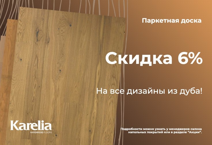Скидка 6% на все дизайны из дуба! Ознакомиться с дизайнами вы можете на странице акции или посетив наши салоны в городах присутствия Подробности на странице акции: https://polberry.ru/action/174867/