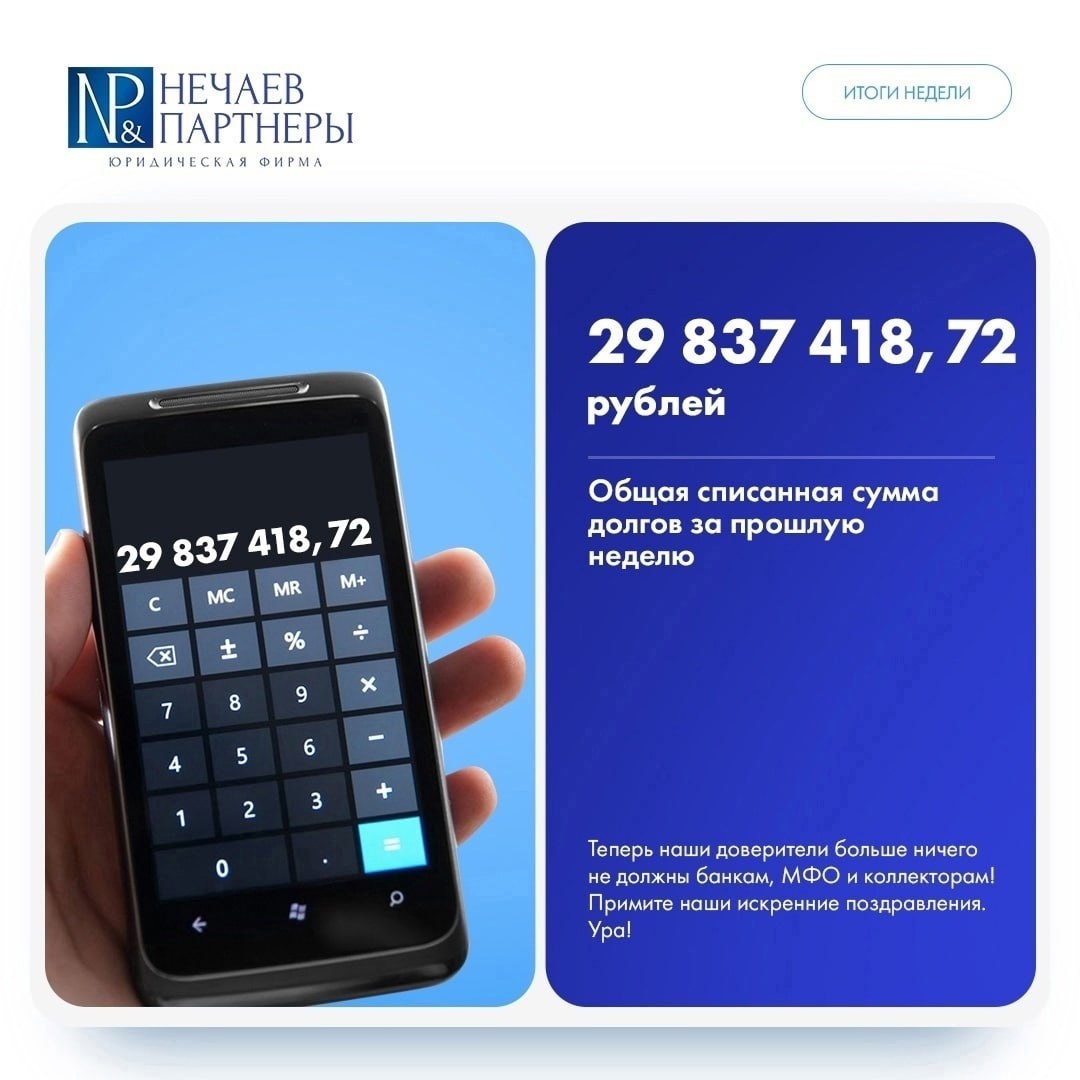 💪 Целая неделя позади! За это время мы успешно завершили работу, благодаря которой наши клиенты освободились от задолженности в размере 29