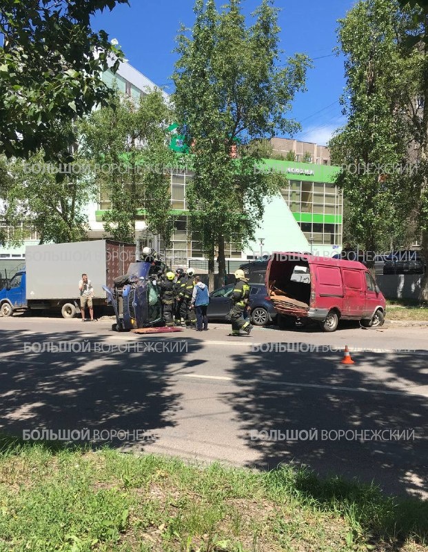 Возле ТЦ "Аксиома" в Воронеже перевернулся автомобиль