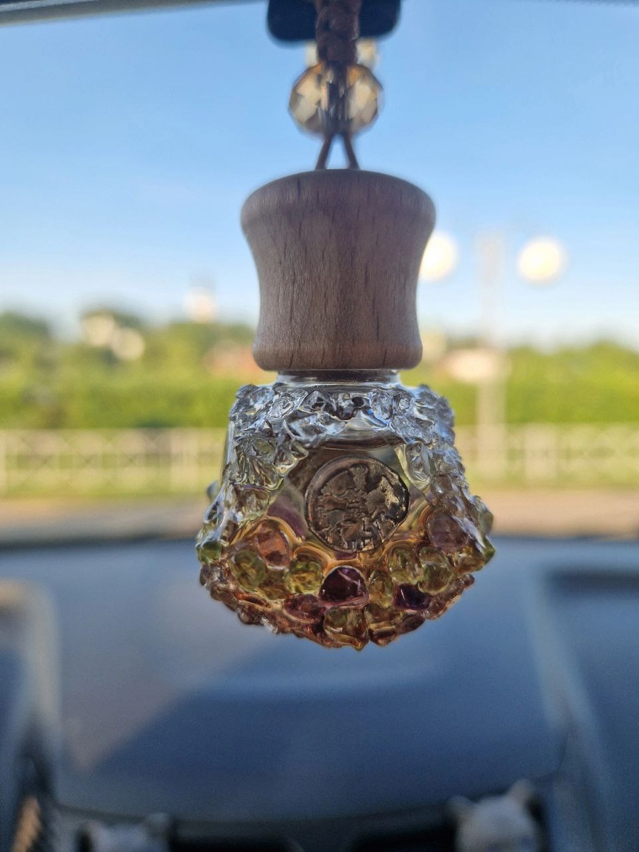 Продолжая тему парфюмерных флаконов, хочу поделиться с вами своей новой работой! Этот проект стал возможен благодаря одному из моих клиентов. Он был настолько впечатлён моей авторской ароматницей с монетами и драгоценными камнями, что заказал нечто подобное, предоставив собственные монеты.Теперь этот флакончик, созданный специально для Александра, украшает его машину в Александровской слободе. Да-да, вы уже поняли, о каком заказе речь) Вместе с монетами Александр сделал мне невероятно приятный подарок – старинный парфюмерный флакончик XIX века, о котором я давно мечтала! Я решила дать ему новую жизнь, и в этом видео вы увидите, что из этого получилось. В соответствии с традициями моей мастерской, на лицевой стороне флакона, в обрамлении серебряных зеркальных сфер, я поместила старинную серебряную проволочную копейку времен Петра I. На обратной стороне создан витраж из серебряных сфер, позволяющий рассмотреть монету с обеих сторон. Весь флакон щедро инкрустирован аметистами и хриз
