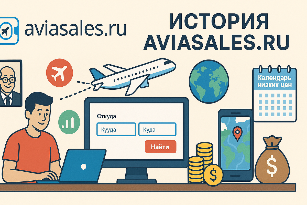 Сервис aviasales.ru — это крупнейший российский поисковик авиабилетов, специализирующийся на поиске и сравнении цен на перелёты. Он играет роль агрегатора, не продавая билеты напрямую, а перенаправляя пользователей на сайты авиакомпаний и агентств. Вот история его развития: