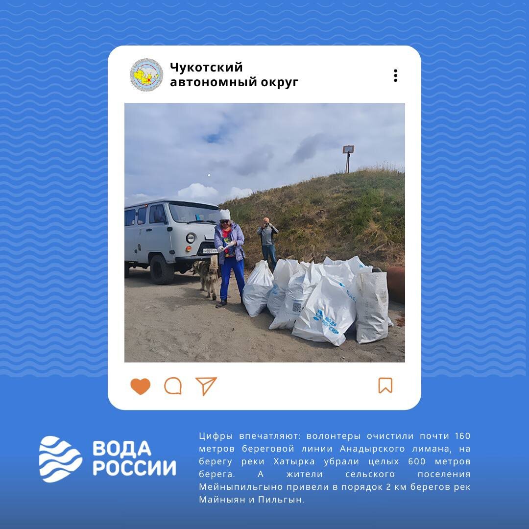 Уборка водоемов – это возможность сохранить красивейшие места, которыми сможет насладиться не одно поколение. И здесь нет маленькой работы, важна каждая собранная бумажка, пакет или бутылка. По итогу с берегов вывозятся целые мешки мусора. На субботники в рамках акции #ВодаРоссии выходят тысячи волонтеров в разных регионах. Сегодня расскажем о результатах добровольцев из Чукотского автономного округа, Карачево-Черкесской Республики, Республики Саха, Калининградской, Рязанской и Московской областей. 🤝 Благодарим за ваш неоценимый вклад в защиту природы!