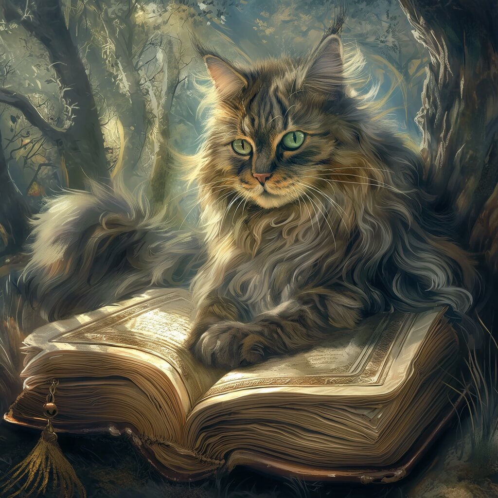 Пушистик жил в уютном доме с любящими хозяевами, которые баловали его вкусностями и игрушками. Его жизнь была спокойной и размеренной, но иногда ему хотелось чего-то большего. Однажды вечером, когда хозяева ушли на работу, Пушистик решил исследовать дом. Он забрался на шкаф, где хранились старые вещи, и нашёл коробку с магическими предметами. Одна из них привлекла его внимание — маленькая черная свеча с загадочной надписью "Для самых смелых".