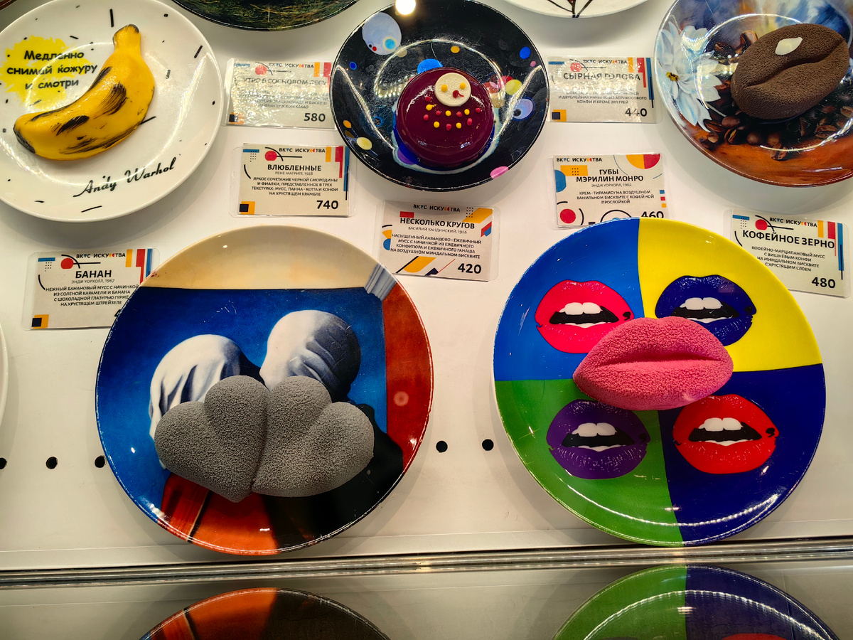 Заведение специализируется на десертах, выполненных по мотивам шедевров мирового искусства. Поэтому я не мелочилась, а сфотографировала весь прилавок!)))