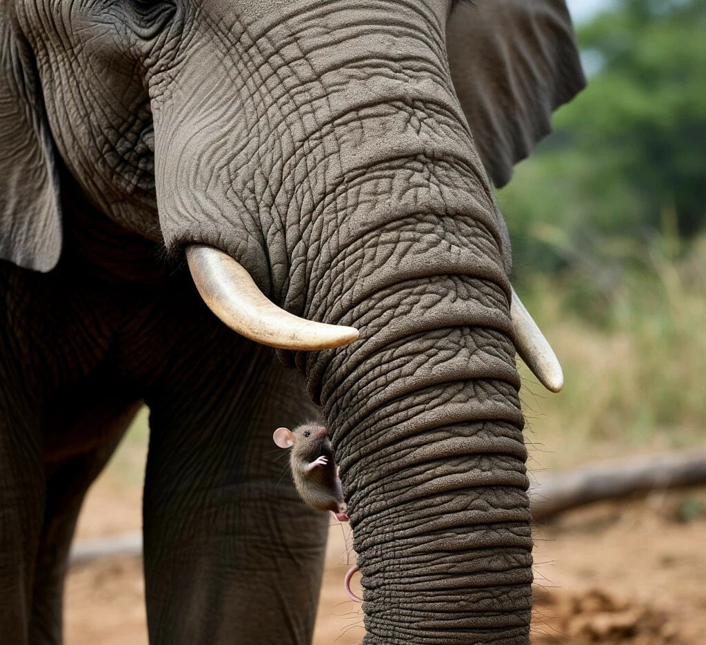 Теория о том, что мышь может залезть в хобот и задушить слона, абсолютно нереалистична. Хобот слона — это невероятно мощный и чувствительный орган, состоящий из десятков тысяч мышц. Слон может с лёгкостью выдохнуть воздух со скоростью более 150 км/ч. Любую мышь, которая попыталась бы залезть в хобот, просто выбросило бы наружу, как пробку из бутылки.