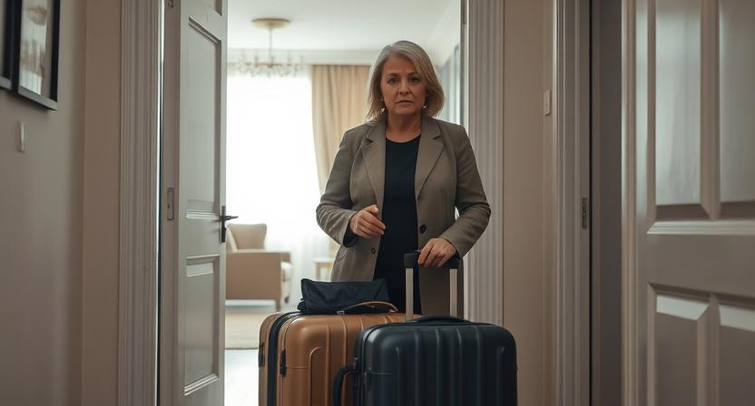 Алёна медленно открыла входную дверь, и её сердце упало. На пороге стояла свекровь с тремя огромными чемоданами.