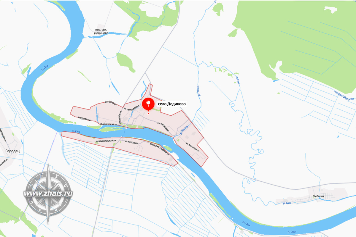 Теперь же мы перенесемся в Дединово времен конца XIX - нач. XX вв. С правого берега Оки сей населенный пункт в те годы выглядел следующим образом: