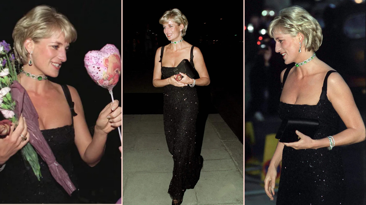 Платье 36th Birthday Dress выполнено из черного кружева шантильи, имеет атласные бретели и украшено ручной вышивкой. Вместе с ним она надела изумрудный и бриллиантовый чокер и подходящие к нему серьги-капли (чокер из коллекции королевской семьи, изначально подаренный королеве Марии дамами Индии в 1911 году). Королева Елизавета передала его Диане в качестве "пожизненного займа" вскоре после того, как она вышла замуж за Чарльза.