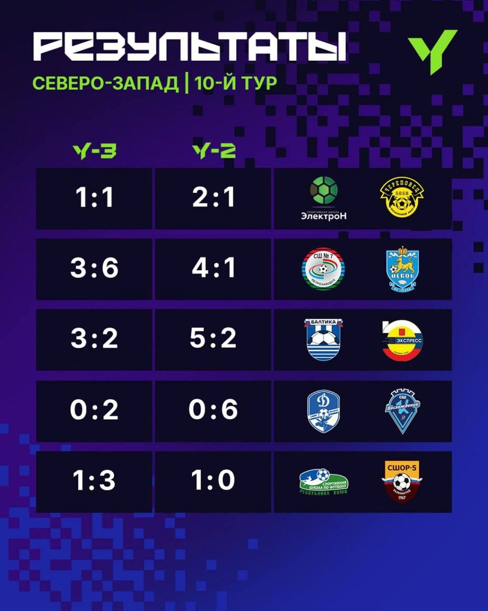Результаты и турнирная таблица после 10-го тура юфл северо-запад.