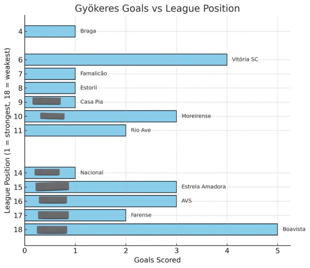 Дьокереш против топ-3 Португалии У самого желаемого нападающего 39 голов, 12 — с пенальти. Т.е. 27 голов без учета пенальти. Фанаты всего мира хотят его видеть в своем любимом клубе. Из 27 голов Дьокереш забил 14 тем командам, которые находятся внизу турнирной таблицы. Ни одного гола "Бенфике". Ни одного гола "Порту". Один гол "Браге". Команды с черным маркером не проходили отбор в европейские соревнования более 10 лет. Да, он много забил, но игрок зависим от количества переходных фаз и слабости защиты. Игры, когда соперник хорошо сопротивляется или когда нет свободного пространства, говорят сами за себя. Рисков — тьма. Цифра в 60-80 млн евро за него — безумие. #статистика @lookatfacts