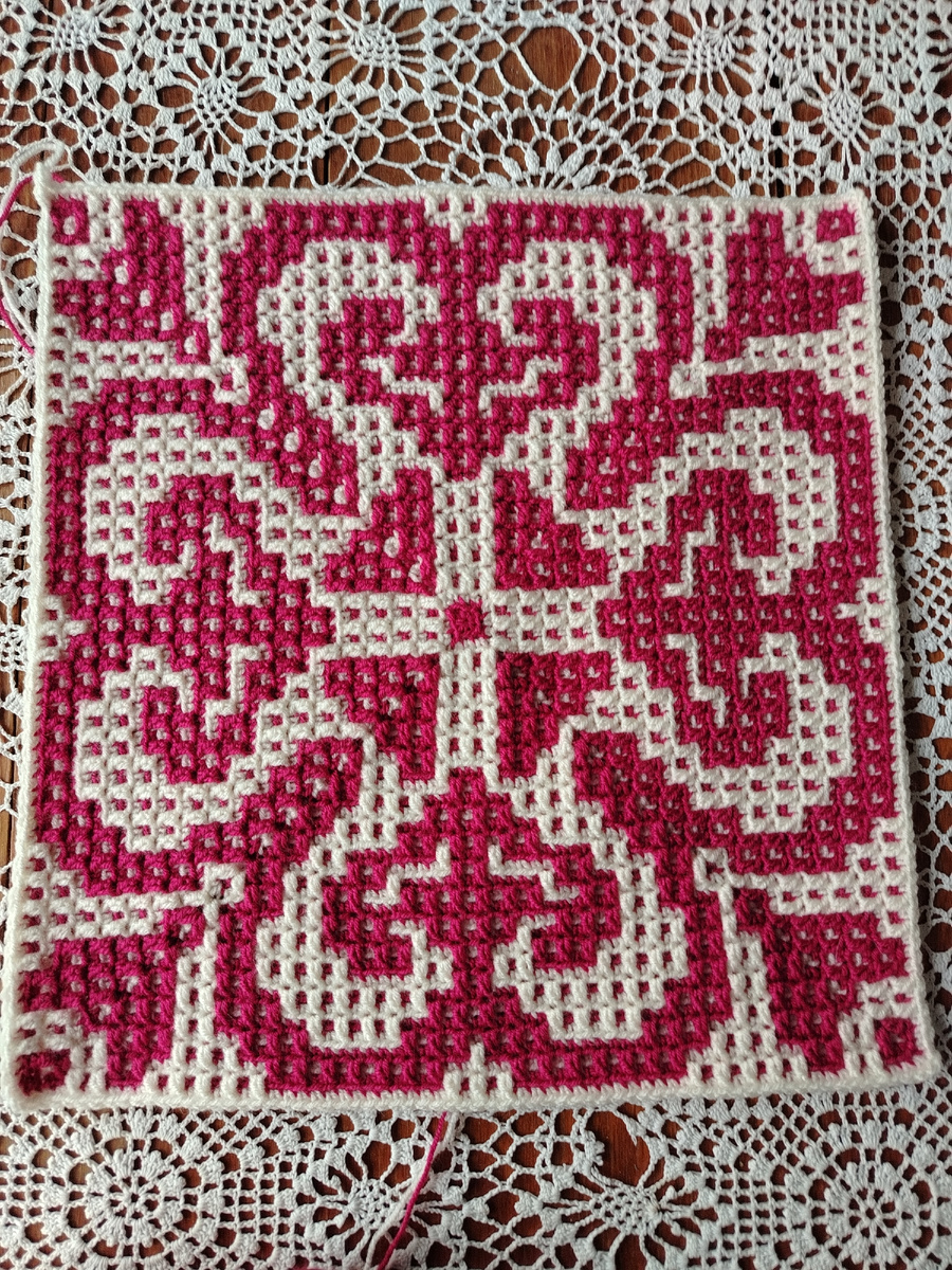 Описание и схема на узор «Фиалка». Мозаичное вязание крючком из центра.