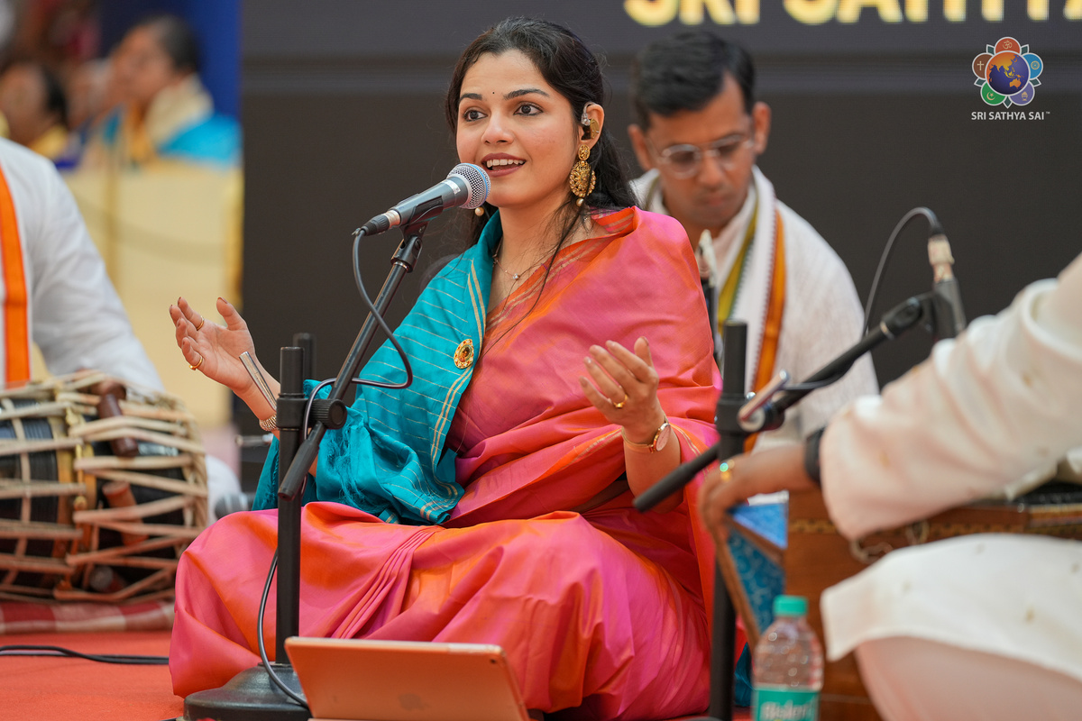 ✨Насладитесь Божественной атмосферой Прашанти Нилаям Новости Прашанти Программа духовной музыки в исполнении г-жи Аарьи Амбекар. Культурная программа детей Бал Викас. 5 июля 2025 г. В священный канун празднования Ашади Экадаши в Прашанти Нилаям были предложены волнующая душу программа духовной музыки г-жи Аарьи Амбедкар и танцевальное представление детей Бал Викас. Назвав это музыкальное подношение благостным моментом в своей жизни, г-жа Аарья с теплотой вспомнила своё первое выступление в божественном присутствии Бхагавана в 2009 году, когда Свами посетил Хадши и Мумбаи. Её голос, подобный звону храмового колокола, разносился по залу, очаровывая собравшихся сладкозвучными исполнениями, восхваляющими славу Господа Витталы. Каждая нота освящала атмосферу, окутывая всех волнами преданности и любви. После этого возвышенного музыкального предложения последовала яркая танцевальная постановка, представленная детьми Балвикас из Махараштры Вест, под названием "Экам Сат Випрах Бахудха Вад