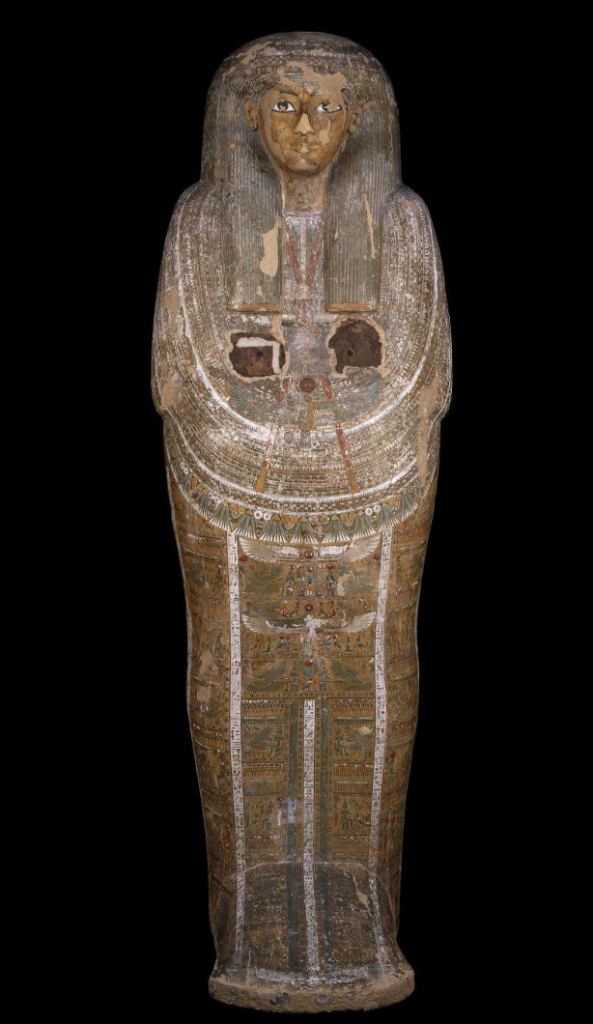 Его богатств, источник которых измерялся скорее культовым престижем, чем земельными угодьями, было достаточно, чтобы заказать гроб, который одновременно служил и усыпальницей, и часовней, и священным текстом: на его блестящих от лака поверхностях разворачиваются и заклинания из «Книги мёртвых», и страсти по Осирису, и целая погребальная драма в миниатюре.