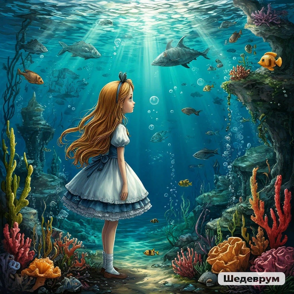 Алиса, вечно любопытная девочка с развевающимися на ветру волосами, однажды гуляла по берегу моря. День выдался солнечным, волны лениво накатывали на песок, а в воздухе витал запах соли и водорослей. Вдруг, ее взгляд упал на необычную ракушку, мерцающую перламутром. Подняв ее, Алиса услышала тихий шепот: "Следуй за мной…" Заинтригованная, она пошла по следам крошечных пузырьков, которые, казалось, вели ее прямо в море. Не раздумывая, Алиса шагнула в воду. Сначала она почувствовала лишь прохладу, но затем, словно по волшебству, ее ноги перестали касаться дна. Она парила в кристально чистой воде, окруженная стайками разноцветных рыбок. Вокруг расстилался удивительный подводный мир. Коралловые рифы, словно сказочные замки, возвышались над песчаным дном. Морские звезды лениво ползали по камням, а медузы грациозно танцевали в лучах солнца, проникающих сквозь толщу воды. Внезапно перед Алисой появилась говорящая морская черепаха. "Добро пожаловать в мой мир, Алиса, – пробасила она. – Я