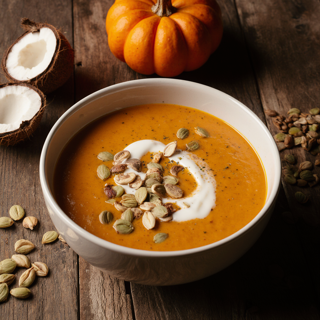Осенний согревающий оранжевый хит.Ингредиенты: 500 г тыквы · 1 морковь · 200 мл кокосового молока · бульон.Шаги: