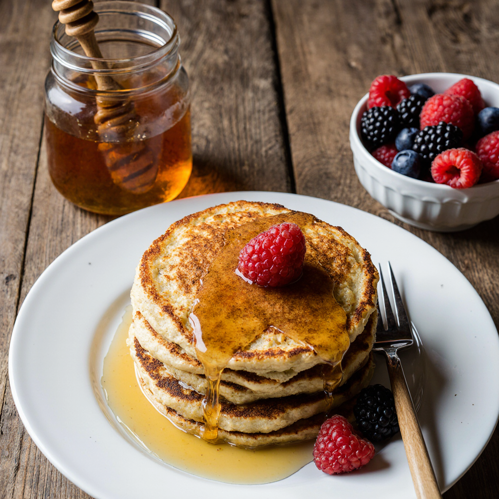 Жарьте без масла на антипригарной сковороде. Совет: В тесто можно потереть яблоко. Чём поливаете панкейки — мёдом или ягодами? #рецепты #панкейки #завтрак #пп #овсянка #фитнес