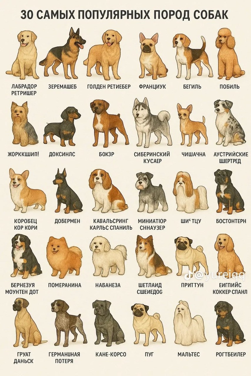 ChatGPT попросили сгенерировать топ 30 самых популярных пород собак.
