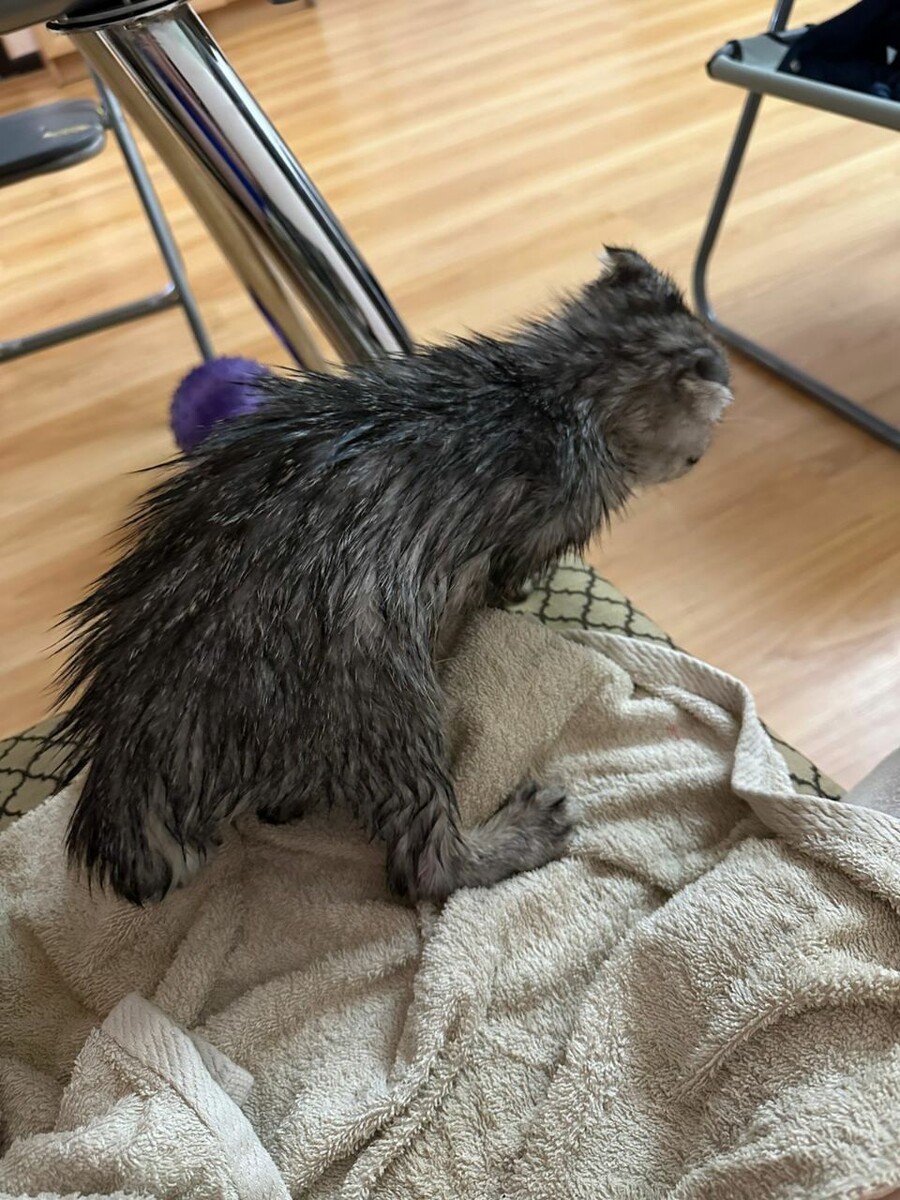 На следующей неделе котенок едет на прием доктору!🙏 И перед этим он принял ванну!)🤗👍