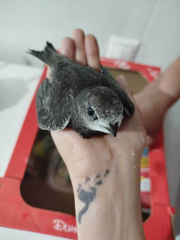 На работу принесли слетка, по словам нашедших был вдали от деревьев и травы. Был посажен в коробку, есть ещё клетка для попугаев небольшая, но начиталась что могут сломать перья об прутья. На данный момент птенец пережил уже сутки, кормлю смесью из обезжиренного творога, сушёного гаммаруса перебитого в пыль и такая же мелкая пыль от скорлупы перепелиных яиц, горошенка яичка. (1-1.5 часть творог 2 части пыли). Раз в 2 часа прием пищи по 3-4 горошинки смеси+водичку капаю на клювик, облизывается и глотает (из пипетки не получается поить).Вечером есть отказался, видимо после 21 часа наступает сон. Летать пытается, но успех слабоват, шлепнулся спорхнув с ладошки, больше не допускаю полетов пока что. Посоветуйте, пожалуйста, по корму и воде: чем можно кормить, как часто нужно поить и какие есть варианты кроме пипеток. Когда можно всерьез заниматься полетом? Буду рада любому дельному совету, заранее благодарю! Подписаться на Пикабу Познавательный. и Пикабу: Истории из жизни.