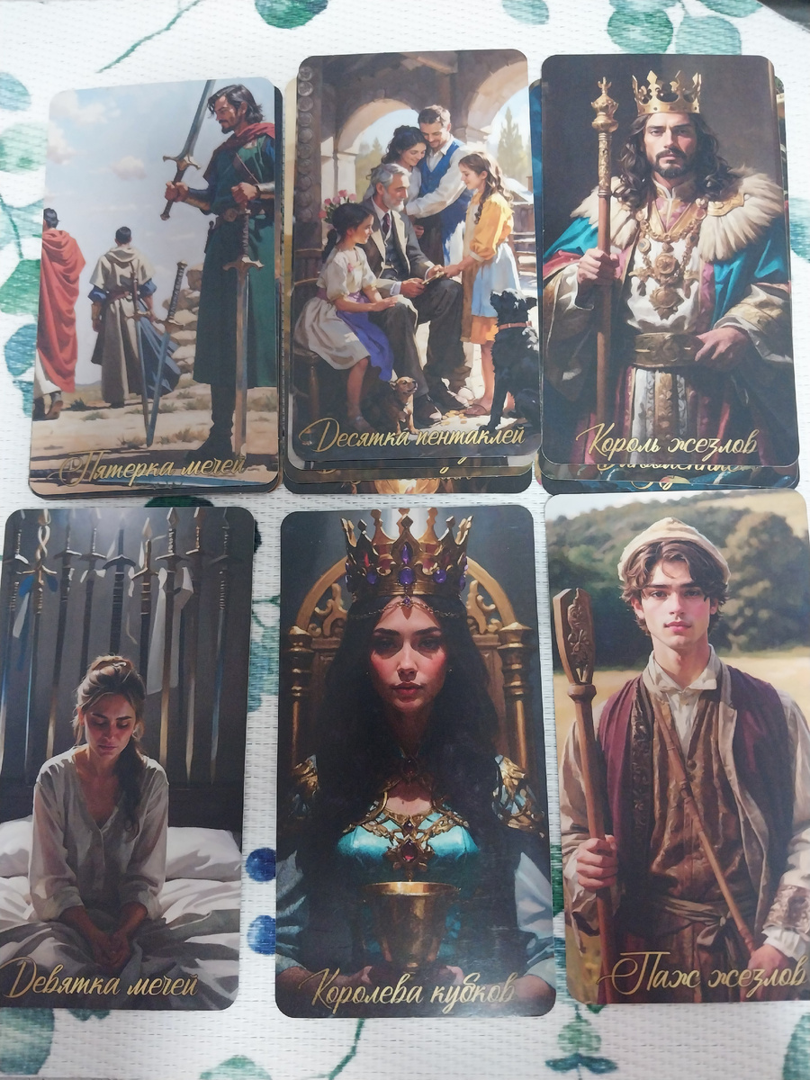 Мужчина — Король Жезлов. 🔥 Страстный, харизматичный, уверенный в себе, огненный. По 5 мечей этот мужчина, обманывает в чем то свою семью или обманывает кого то о семье. Я не могу сказать сейчас, занят он или нет. Возможно, дальше нам в раскладе это покажут. 🤔 🏠 Это может быть необязательно семья, где он муж и у него жена. Это может быть родительская семья или просто круг его доверенных лиц, в которые могут входить и родственники, и близкие друзья. 👨👩👦👦 Вот там он что-то хитрит. Либо вам как-то так преподносят всё это с хитростью, и вы не до конца можете знать, что у него происходит. 🌟 Добро пожаловать на канал «ТАРО ТВОЕГО ДНЯ »! Меня зовут Татьяна. Здесь мы открываем тайны вашей судьбы через символику карт Таро💖. Присоединяйтесь и найдите ответы на важные вопросы! Смотрим дальше. Вы у нас Королева Кубков. 💖 Что случилось мои дорогие, что вы в Девятке Мечей? Вы сами по себе очень чувствительная натура, эмоциональная, нежная, добрая, очень эмпатичная, та, которая