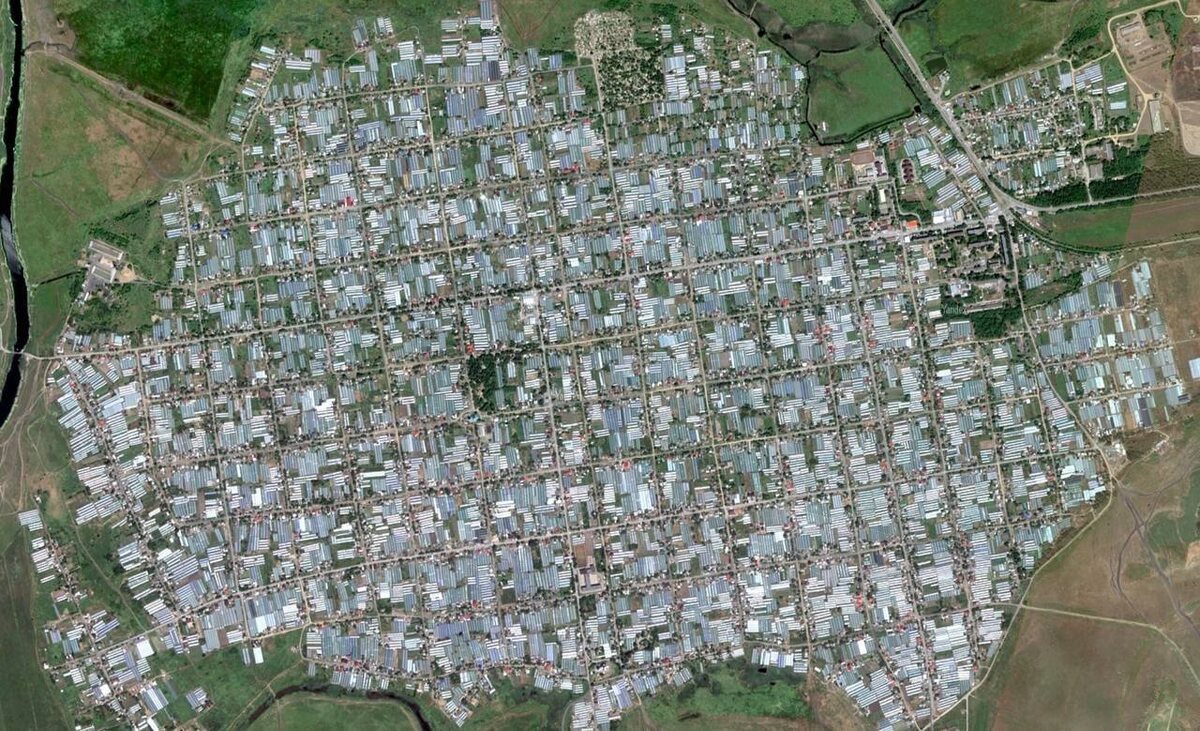 Станицу Кривянскую Ростовской области ни с чем не спутаешь — на спутниковых снимках пространство на 3/4 занято теплицами