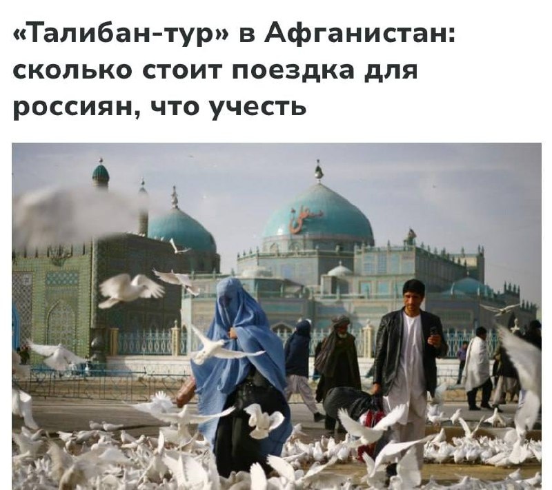 Из интересного: Для россиян готовят необычные туры в Афганистан — первые поездки стартуют уже в августе, а средняя цена составляет около 300 тысяч рублей. Программа включает экскурсии по Кабулу, визиты в музеи и осмотр природных достопримечательностей. При этом сопровождение охраны оплачивается отдельно. Идеальный отпуск 😂