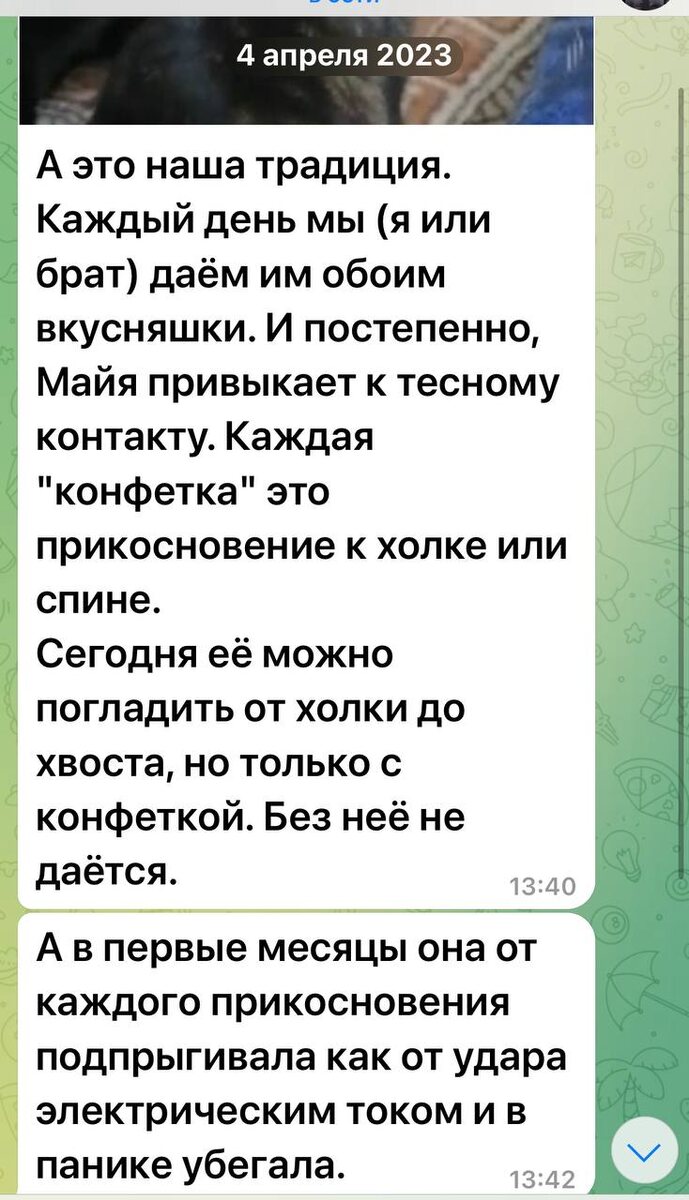 Мне прислали великолепные привет от кошечки, которую взяли три года назад в семью от нашей группы ! Кошечка вздрагивала и подпрыгивала от каждого прикосновения! Хозяева с любовью , терпеливо шаг за шагом на примере своей хозяйской кошечки находили подход к Майе и теперь это Мега ласковая и ручная кошечка 🥰❤️обнимашка. Благодарю Екатерину за #приветЯдома