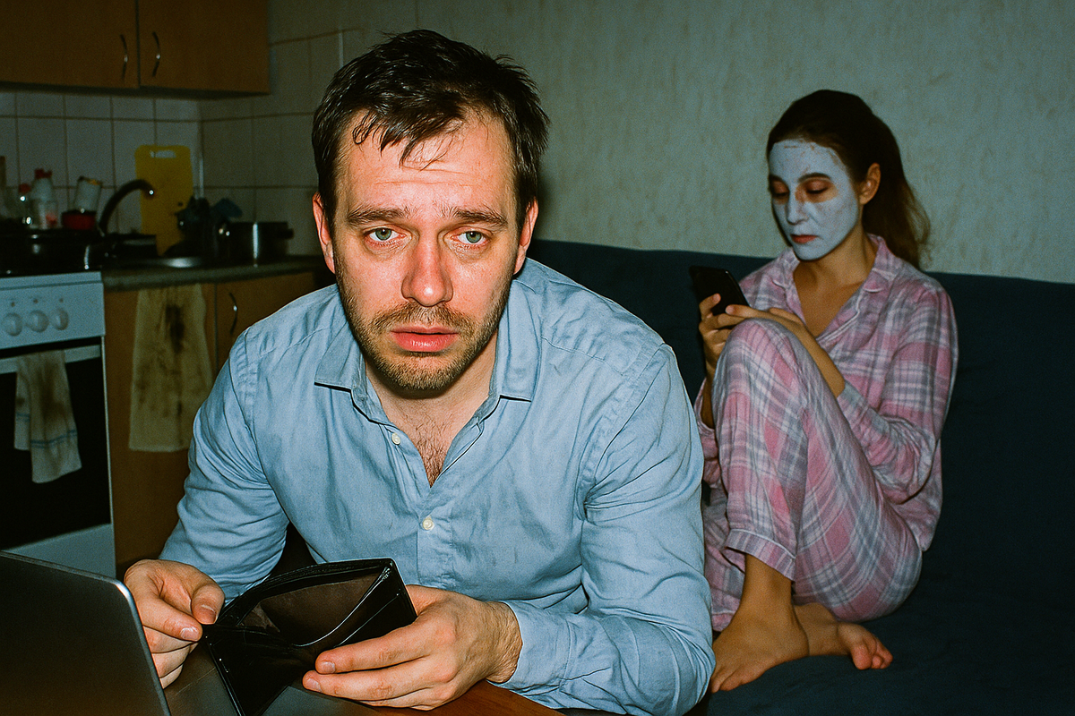 Когда ты в двадцать пять тянешь на себе троих — себя, её и её мечты о великовозрастной принцессе — сначала это даже льстит. Ты будто герой, добытчик, мужик с большой буквы. Но потом… потом ты однажды просыпаешься в субботу в семь утра и не понимаешь, почему в своей же квартире ты чувствуешь себя не как дома, а как в декорациях к её спектаклю, в котором у тебя роль… кошелька с ногами.
