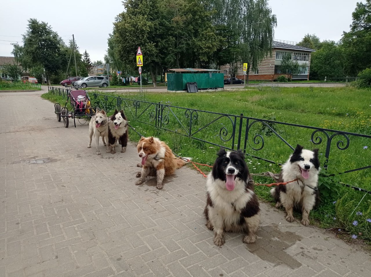 Заказала мне подруга книги на мой день рождения в подарок. И вот они наконец доехали до пункта самовывоза одного маркетплейса. Только… в 8км от нас. И можно было бы, конечно, как нормальные люди, сесть в машину и поехать за ними, но… Это же деньрожденческий подарок, а значит, он должен быть особенным. Поэтому я запрягла упряжку и отправилась за книгами на собаках! Я абсолютно уверена в своих питомцах, но оставлять их одних, без присмотра, пока буду забирать книги, в весьма оживленном населенном пункте было бы неправильно. Поэтому Ваня поехал с нами в качестве соглядатая. И он так серьезно при этом выглядел и столь ответственно выполнял свою роль, что мне всю дорогу хотелось прикрепить к нему мигалку, чтобы наш «кортеж» выглядел бы еще более представительно. Хотя, как вы понимаете, без внимания ни на дороге, ни в самом населенном пункте мы не остались. Нас даже на камеру снимали. А уж какой ажиотаж мы произвели среди местных собак и кошек! А также у овец, коз и коров, мимо которых проез