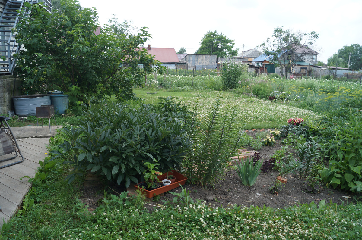 Показываю свой участок - всё по-честному, как есть, с сорняками и проплешинами)) (Я переехала в телеграм, где удобно оформлять одним постом только одну мысль, а здесь продолжу, пожалуй публиковать развёрнуто свои дневники) Жара в Приморье в этом году пришла рано, уже в двадцатых числах июня: в нашем районе градусники показывали +30 по утрам, а днём на шкалу смотреть было страшно. Но шли тёплые дожди, и всё вокруг казалось радостным и полным сил. Знаете это время в огороде, когда он начинает жить своей жизнью? С середины мая ты высаживаешь всё в рядочки, размечая грядки натянутой верёвочкой, строго в соответствии с планом, нарисованным ещё в январе. Но наступает июль, и ещё вчера вполне дисциплинированные овощи срываются в полнейший загул. Не разобрать, кто куда разбежался-раскинулся; наглый самосев, который ты пожалела выдернуть, атакует приличных соседей, и окончательно наглеет укроп. Безобразное поведение! Моя аптекарская грядка превратилась в дикое поле. Что творит сорная трава сл