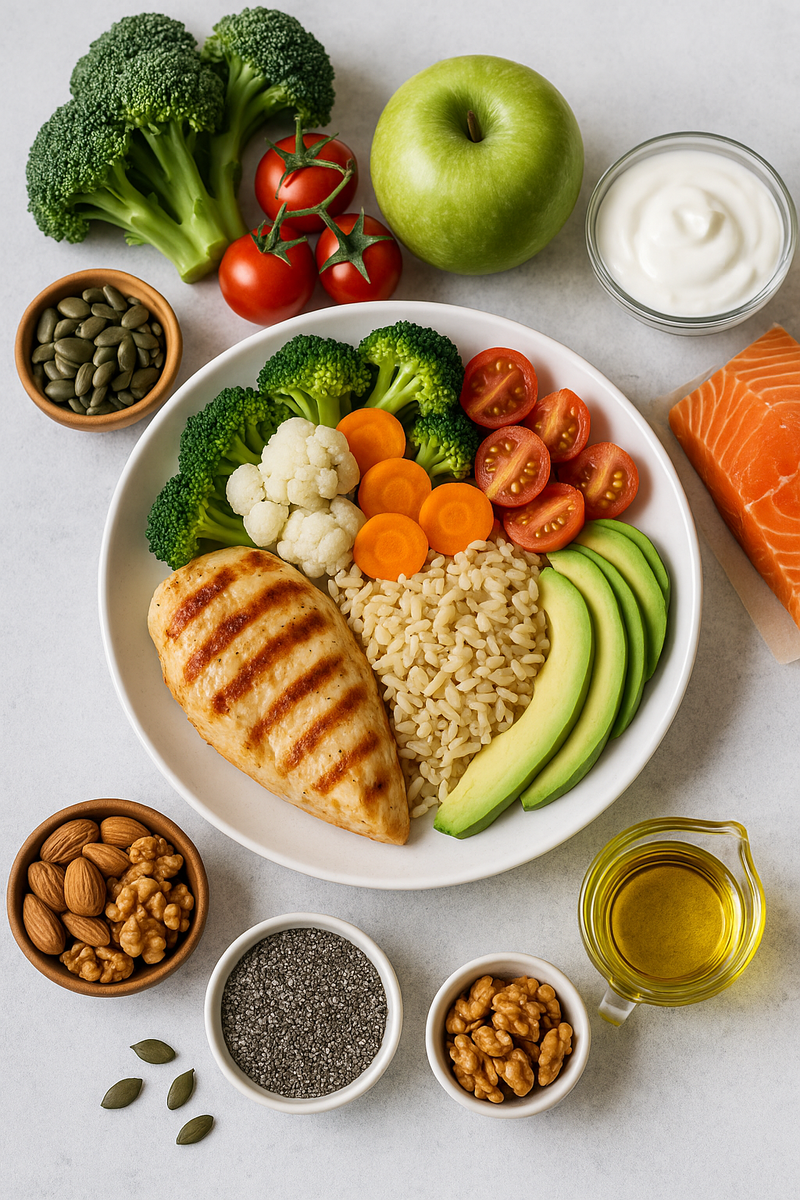 Клетчатка — главный союзник стройности. Она замедляет усвоение пищи, стабилизирует уровень сахара, создает ощущение сытости. Добавляйте в каждый прием пищи: овощи, зелень, семена чиа, льна, ягоды, цельнозерновые продукты.
