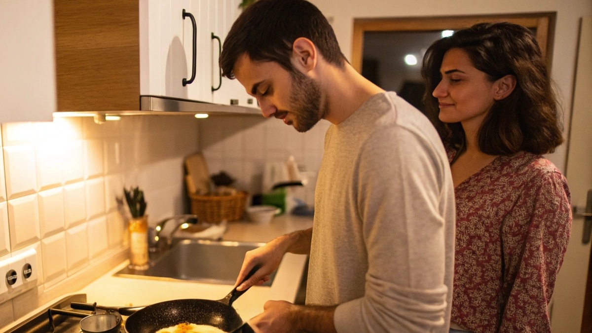 Я на кухне у Димы. Первый раз. Он готовит омлет — старается, волнуется. Мило так. А я смотрю на него и думаю: "Господи, какой же он хороший".