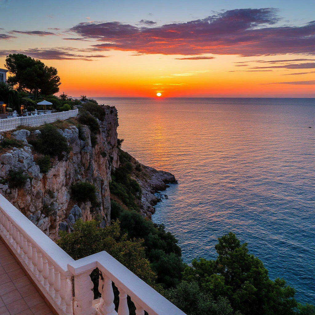 Сбылась ее мечта. Они не просто отдыхали на море, они жили в уединенном частном отеле, расположенном на высоком скалистом берегу. Из номера открывался сногсшибательный вид на бесконечную морскую синь. Заселились они днем очень уставшие и сразу плюхнулись спать. А когда проснулась, Жанна была поражена грандиозностью открывшегося зрелища. Темнело. Небо, в том месте, где встречалось с темными водами моря, было насыщенно оранжевого цвета, постепенно светлея и переходя в желтый, а потом светло-синий. А в центре всего этого выделялся яркий диск заходящего солнца.