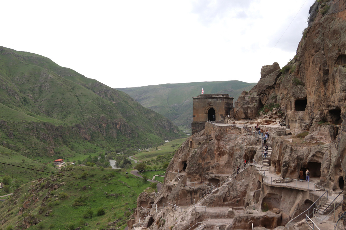 Не знаю, реально ли вообще составить хоть какое-то, пусть и самое поверхностное впечатление о стране за пару дней, но если да, то утверждение о том, что пещерный монастырь Вардзия – это одно из самых поразительных мест на карте исторических памятников средневековой Грузии, является вполне оправданным. История высеченного в скалах монастырского комплекса, овеянного легендами о царице Тамаре, ведет свой отсчет с двенадцатого века. Говорят, что в горе более шести сотен помещений, хотя лично в этом удостовериться очень сложно, но по крайней мере, по ощущениям, количество лестниц и туннелей – бесконечно… Это просто громадный каменный муравейник, внутри которого на любопытного гостя наваливается чувство клаустрофобии, а на внешних лестницах, чьи неровные ступени расположились по краю горы, нависая над пропастью - панические атаки. Монастырский комплекс Вардзия расположен в регионе Самцхе-Джавахети, недалеко от города Ахалцихе, и он был последней точкой нашего двухдневного путешествия по Гр