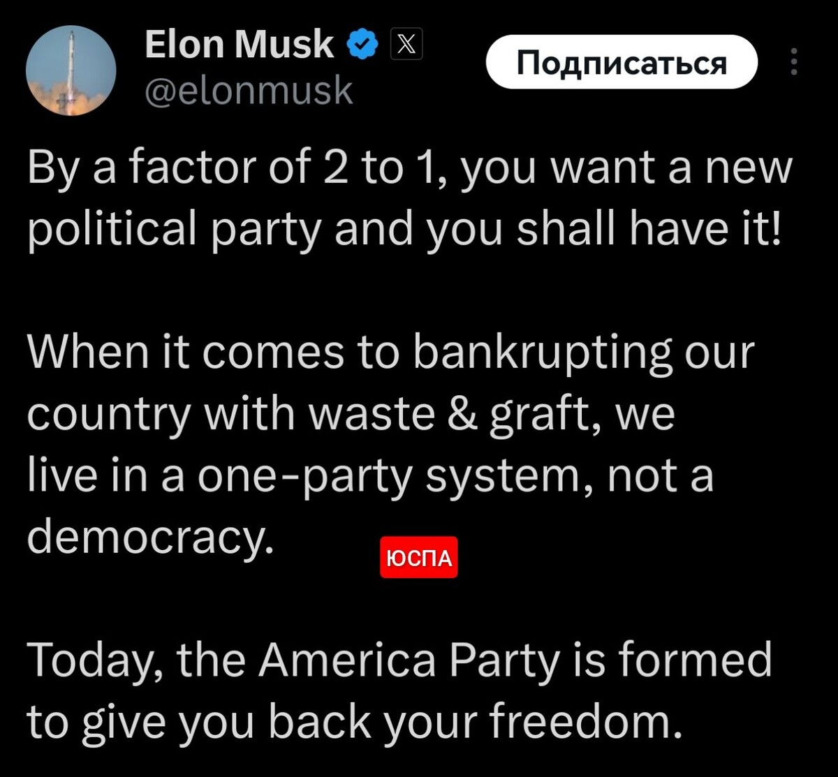 Сегодня создана новая партия "Америка", чтобы вернуть вам свободу