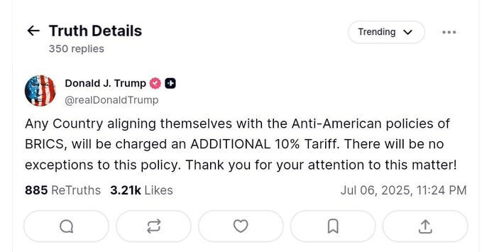 Trump slaps 'ADDITIONAL' tariffs on 'any BRICS' ally