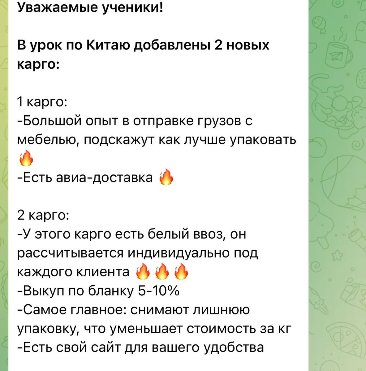 ВАУ ❗️ Еще одно обновление ❤️🔥 Добавили 2 карго, одно из которых с БЕЛЫМ ВВОЗОМ⚡️ что очень актуально для работы с ВБ в ближ будущем 🤪 Вообщем курс сильно усиливается на информацию. Приходите учиться - точно будет полезно ❤️🔥