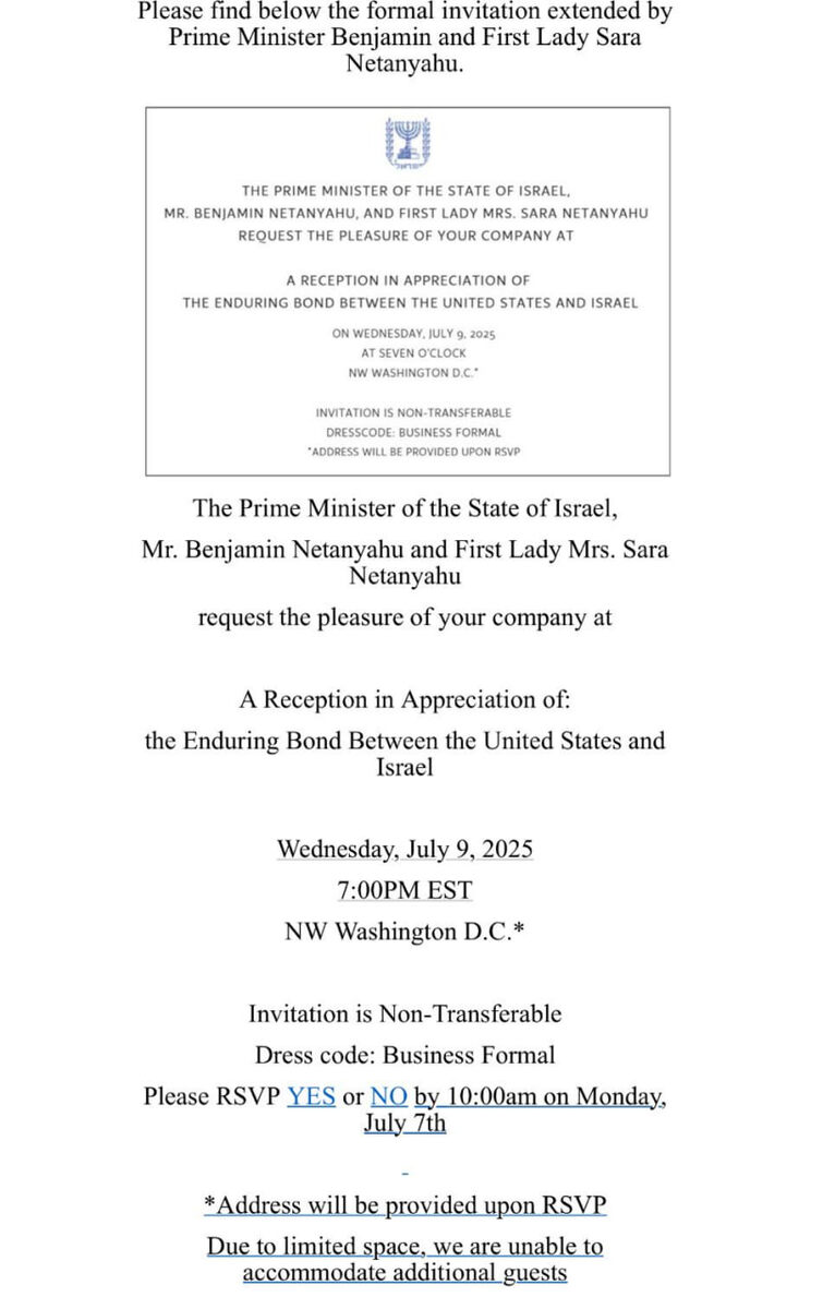A leaked document reveals Netanyahu’s D.C. reception schedule following Gaza talks.