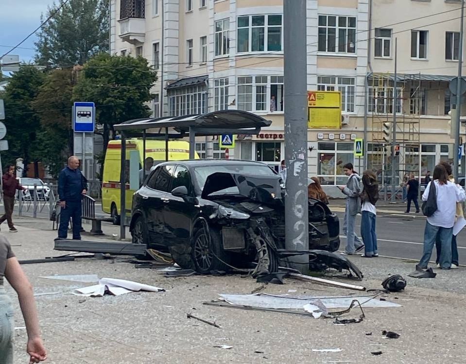 Авто влетело в остановку с людьми в центре Казани после столкновения с другой машиной