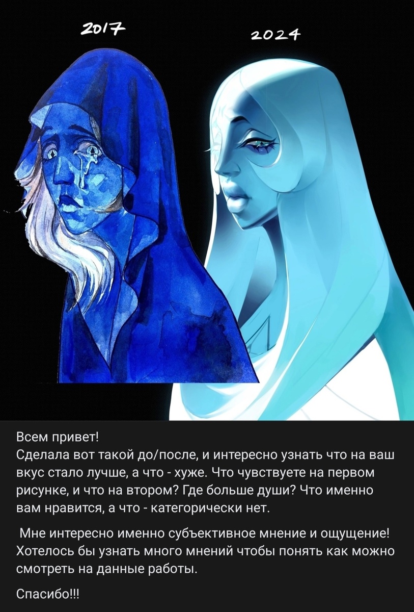 Художник Колибра наконец-то призналась, что ей нужно общественное мнение! Она начала публиковать свои работы в сообществах, где можно выразить субъективную позицию об ее искусстве. Такие как Критика АРТов. И вот что она прочитала в свой адрес! Здесь изображено слияние лично созданных персонажей по мультсериалу Вселенная Стивена, Биотит. Очевидно, что художница Колибра даже не подозревала сколько особых черт и нюансов обнаружат зрители! Читаем что думает общество на счет старого и нового скилла в цифровом рисовании: Прочитать остальные комментарии можно по ссылке: https://vk.com/wall-154776625_241117 На нем мы видим персонажа Голубой Алмаз из мультсериала Вселенной Стивена. Как всегда комментаторы разделились на два лагеря! Одни утверждают что в первом арте больше души, в то время как вторые считают, что именно во втором видно приобретенное мастерство! Давайте же прочитаем что думают люди! Остальные мнения можно прочитать по ссылке: https://vk.com/wall-154776625_240518 Из всего материал