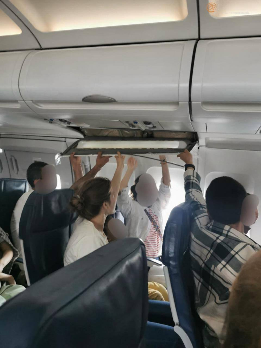 Во время полёта у лайнера потерялась часть салона — пассажиры пытались вернуть панель на место, но безуспешно.